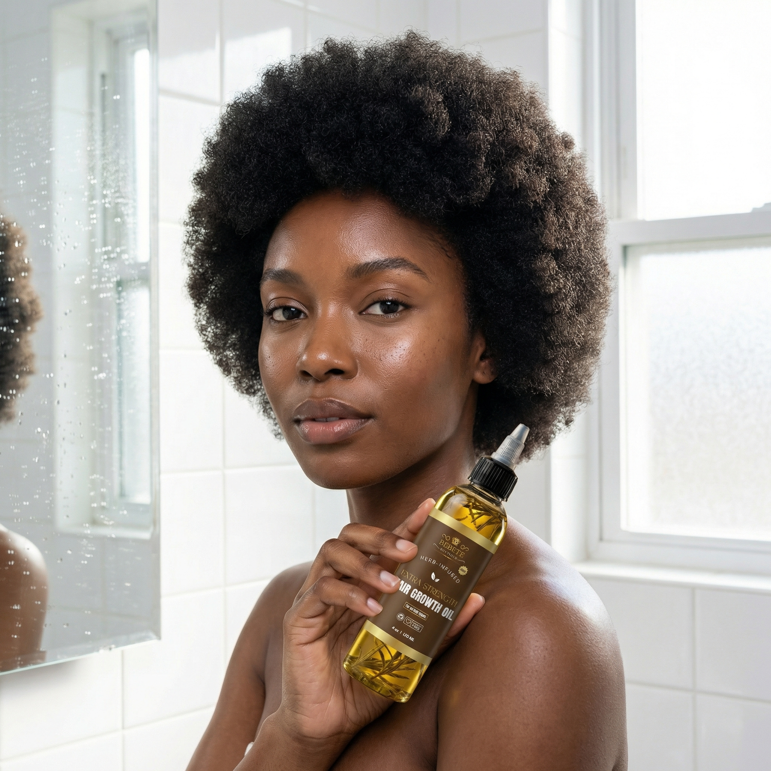 BEBETE Extra-Strength Hair Growth Oil is a nutrient-rich blend of carefully selected oils and botanicals designed to nourish the scalp, strengthen strands, and support healthier, fuller-looking hair. Each bottle is infused with visible herbs, allowing you to see the purity and potency in every drop.